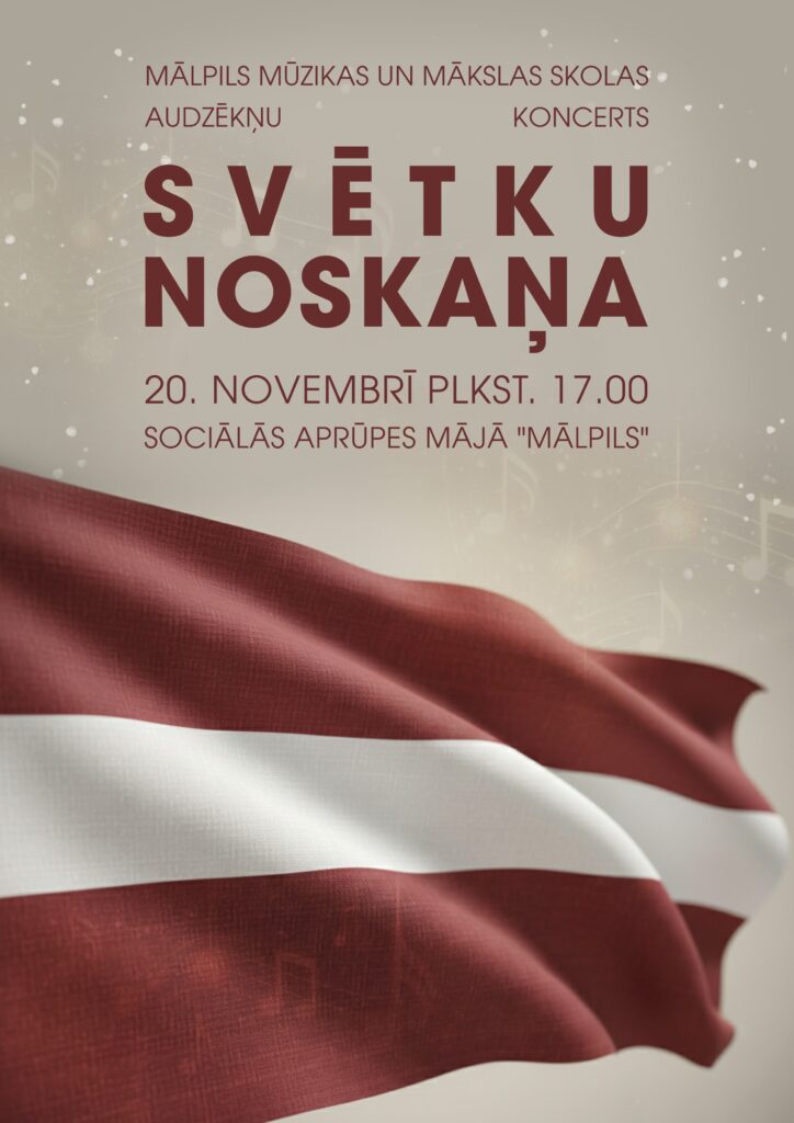 Atzīmējot valsts svētkus, Mālpils mūzikas un mākslas skolas mūzikas nodaļas audzēkņi 20. novembrī plkst. 17.00 viesosies sociālās aprūpes mājā “Mālpils” ar koncertu “SVĒTKU NOSKAŅA”.