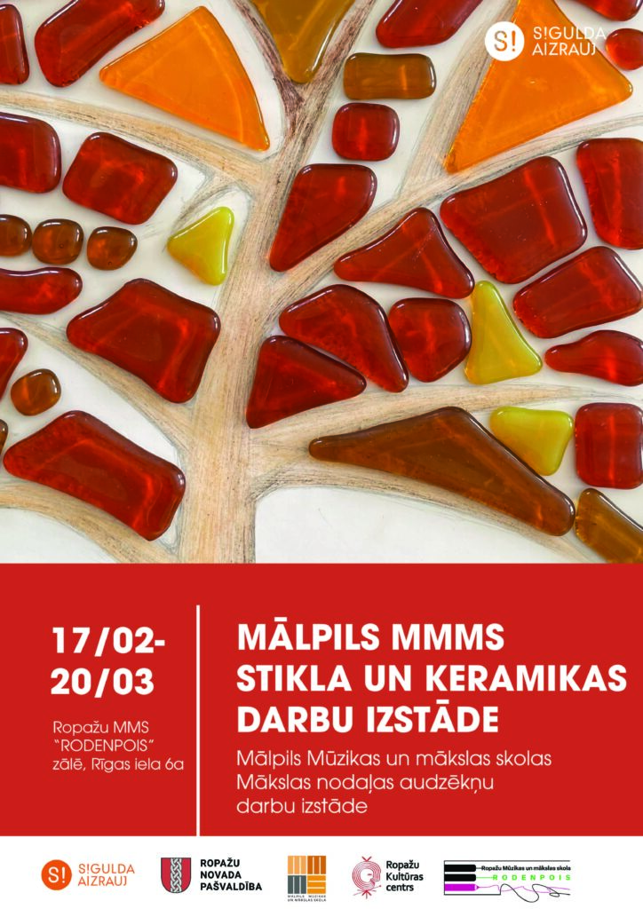 Ropažu MMS “Rodenpois” zālē, Rīgas ielā 6a skatāma stikla un keramikas darbu izstāde. Izstādi var aplūkot no 17.02-20.03